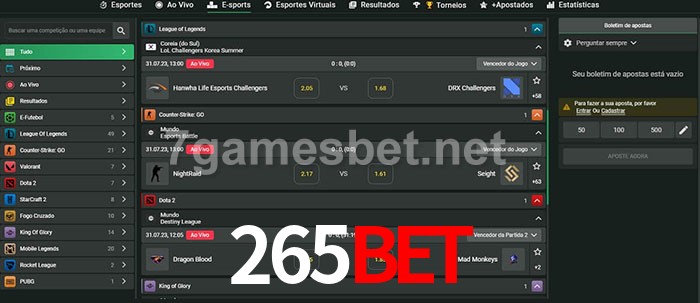O 265bet oferece uma grande seleção de opções de apostas em e-sports com probabilidades competitivas